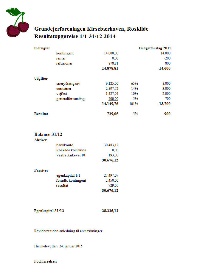 Forelæggelse af budget og fastlæggelse af kontingent for 2014