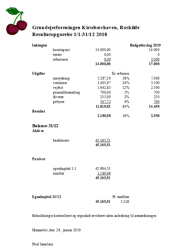 Forelæggelse af budget og fastlæggelse af kontingent for 2019